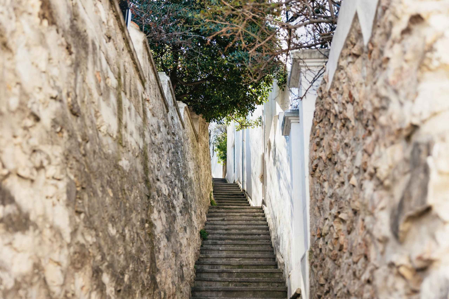 Ascend beautiful old stairways and enjoy the sublime scenery with views of the seaside, the city skyline, and the Basilica of Notre Dame in the distance.
