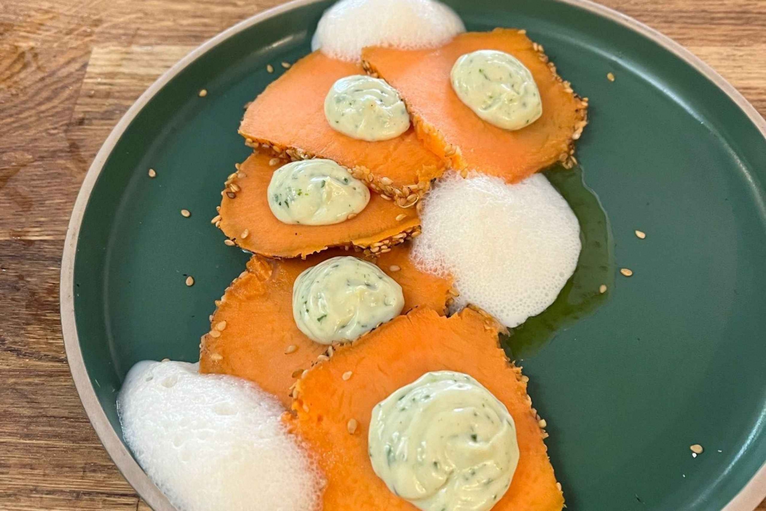 Following the workshop, you will savor your culinary masterpiece in an elegant dining space, paired with a selection of exceptional local wines, enhancing the depth and pleasure of each dish. Depending on the session you choose, your experience will conclude either at 1 p.m. or 9 p.m., leaving you with cherished memories and refined culinary skills.